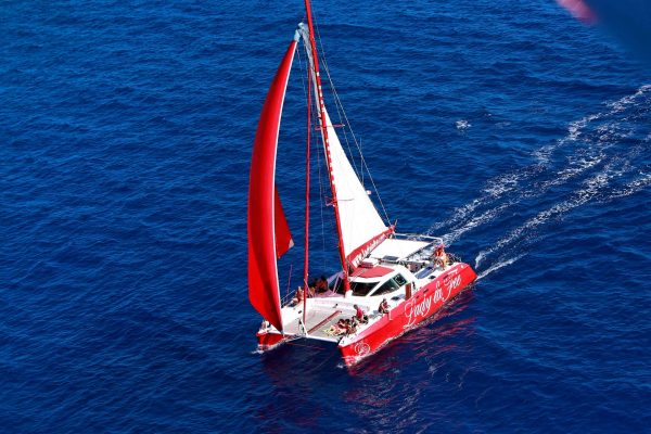 Situé au cœur de la station balnéaire de saint Gilles les bains, venez-vous évader pour quelques heures à bord du catamaran rouge flamboyant.